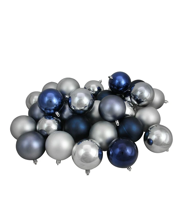 Northlight 32ct Sapphire Blue/Denim/Silver/Pewter Gray Shatterproof Christmas Ball Ornaments 3.25"