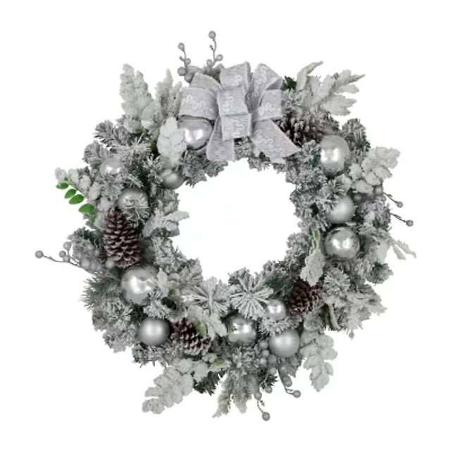 Northlight Glitter And Frosted Foliage Artificial With Bow 30-Inch Unlit Wreath