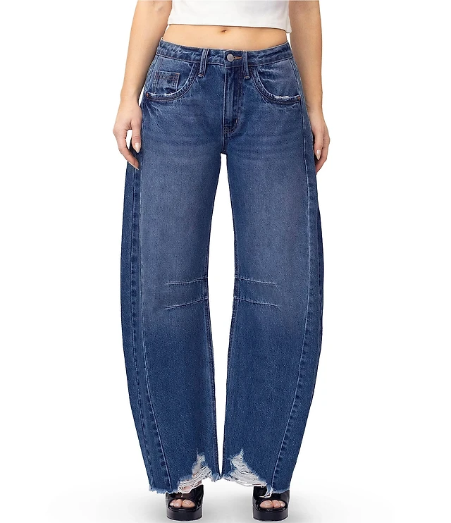 FRAYED Jeans High Rise Baggy Heart Detail Barrel Wide Leg Jeans
