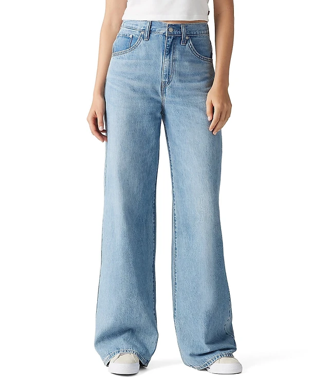 High-Rise Distressed Light Wash Baggy Jeans