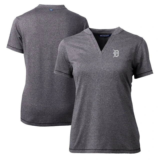 Women's Cutter & Buck Heather Charcoal Detroit Tigers DryTec Forge Stretch V-Neck Blade Top