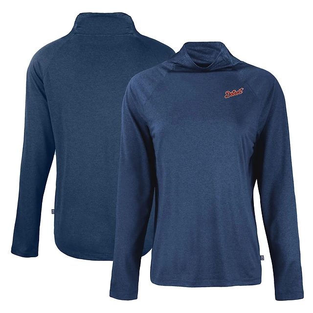 Women's Cutter & Buck Navy Detroit Tigers Cooperstown Collection Coastline Epic Comfort Eco Recycled Funnel Neck Raglan Pullover Top
