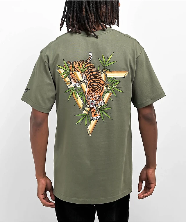 Hypland Orange Tiger Logo Olive Green T-Shirt