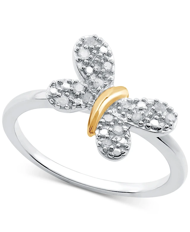 Diamond Butterfly Ring (1/10 ct. t.w.) in Sterling Silver & 14k Gold-Plate