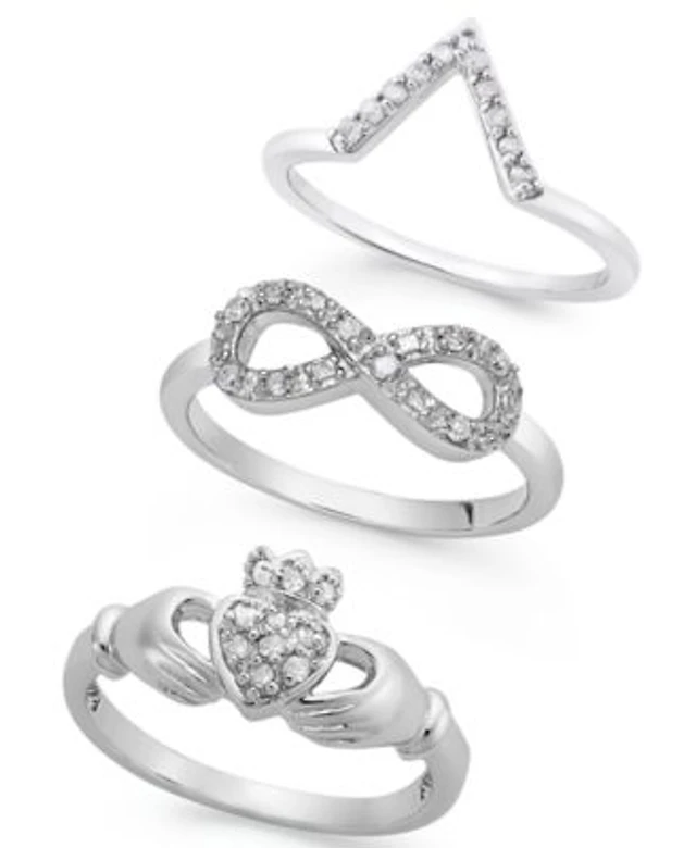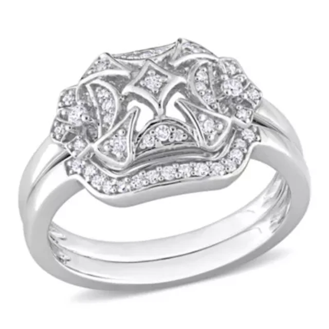 Multi-Diamond Center Bypass Swirl Diamond Ring 1/6 ct tw Sterling Silver