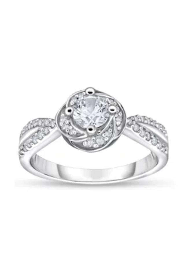 Lab Created 1/4 CT TGW White Sapphire and Diamond Accent Ring Sterling Silver