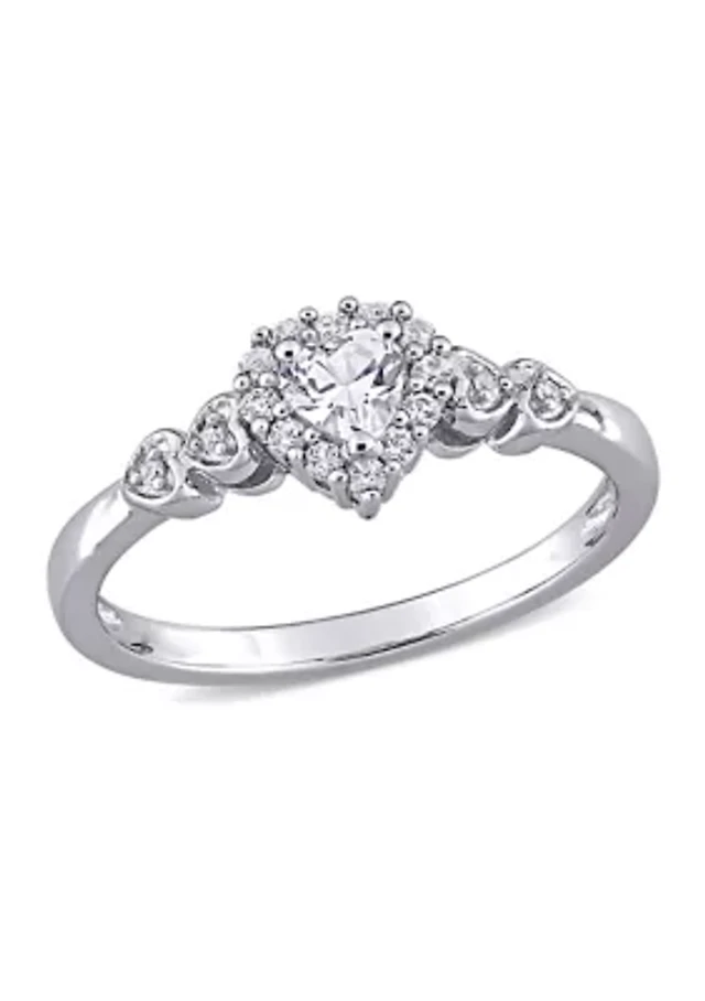 3/8 ct. t.w. Created Blue Sapphire and Diamond-Accent Halo Heart Ring Sterling Silver