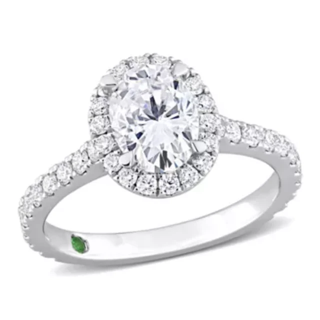 Lab Created 1.54 ct. t.w. Diamond with Tsavorite Accent Halo Engagement Ring 14K White Gold