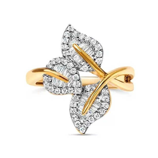 1/3 CT. T.w. Baguette and Round Diamond Double Loop Ring in 10K Gold