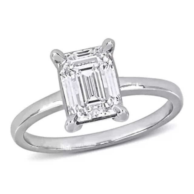 14K White Gold 1 ct Round/Emerald Diamond Ladies Ring