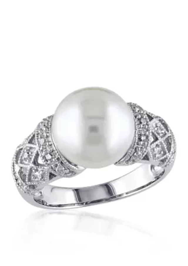 Tahitian Pearl (8mm) and Diamond Accent Ring in 14k Gold