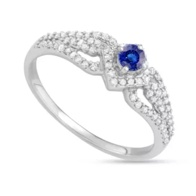14k White Gold Ring, Sapphire (1 ct. t.w.) and Diamond (1/8 ct. t.w.) Ring