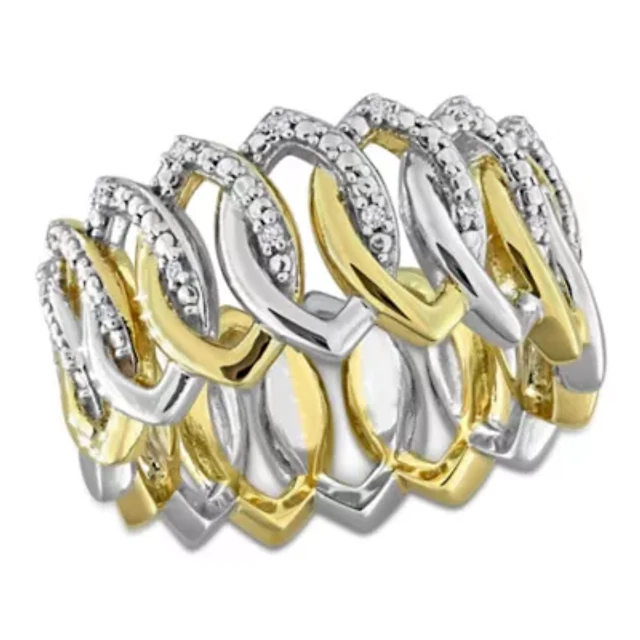 Diamond Accent Pattern Ring in Two-Tone Stainless Steel