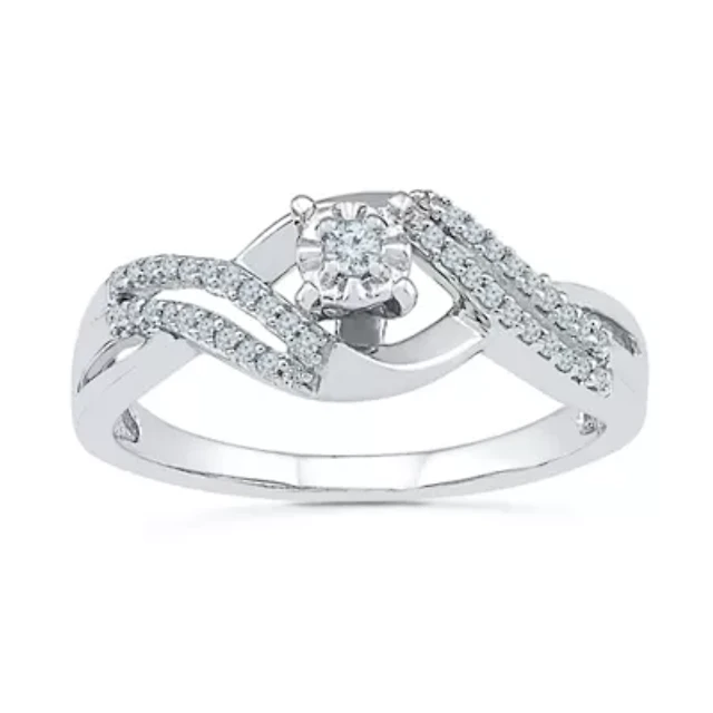Promise My Love Womens 1/6 CT. T.W. Natural White Diamond Sterling Silver Round Crossover Ring