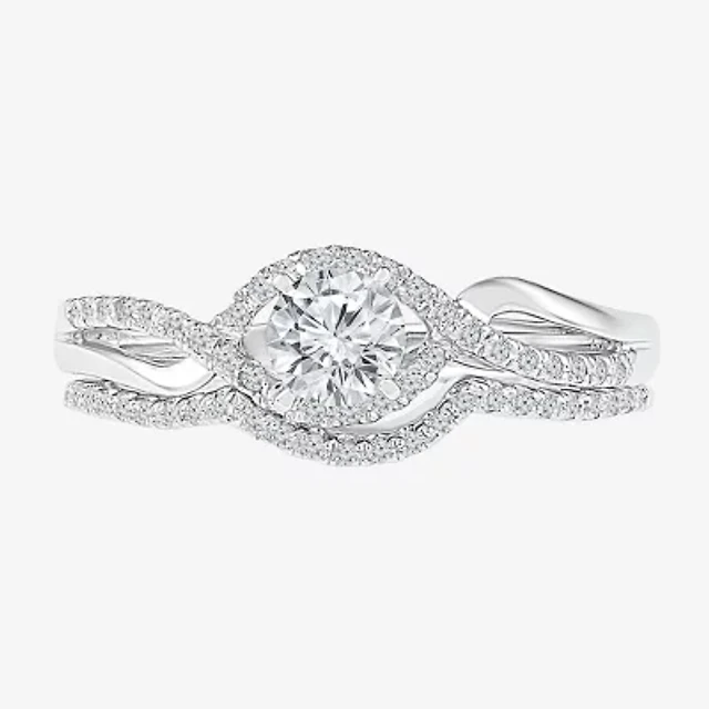 1 CT. T.w. Composite Diamond Double Oval Frame Vintage-Style Engagement Ring in 10K White Gold