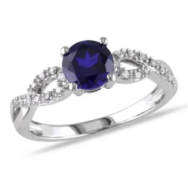 Men's Blue Lab-Created Sapphire & Diamond Ring 10K White Gold