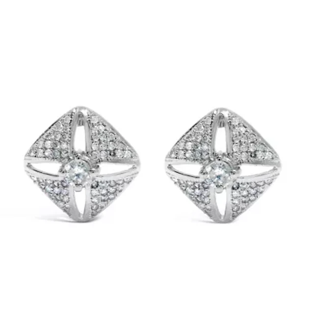 Cubic Zirconia Diamond-Shaped Stud Earrings in Sterling Silver
