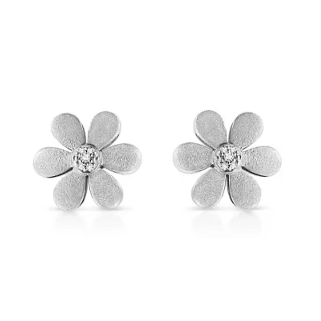 Matte Finished Silver Diamond Accent Flower Hoop Stud Earring
