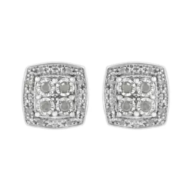 Black Diamond Cluster Square Stud Earrings (1/6 ct. t.w.) in Sterling Silver