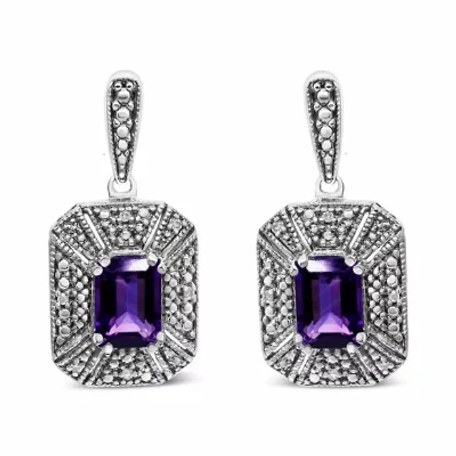 Silver Diamond Accent and 7x5mm Purple Amethyst Stud Earrings