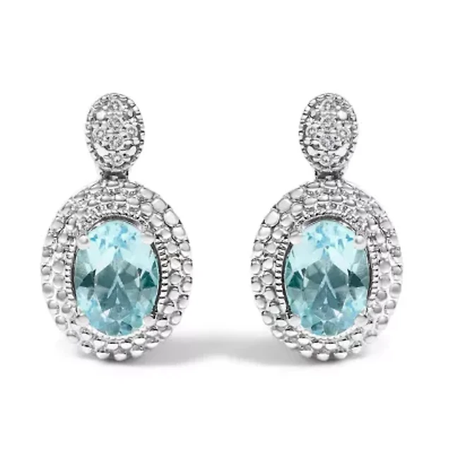 Diamond Accent & Opal (3/4 ct. t.w.) Stud Earrings Sterling Silver (Also Available Aquamarine)