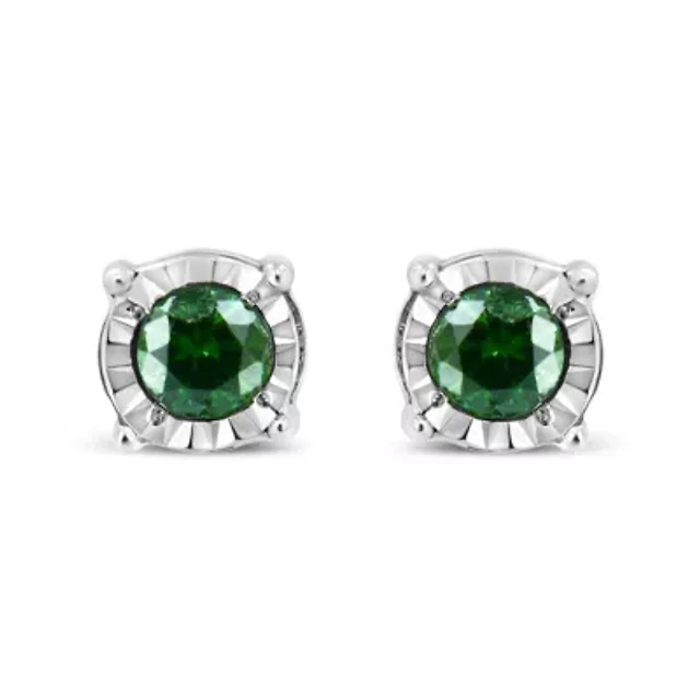 Silver 1/ Ct Green Diamond Miracle- Stud Earrings