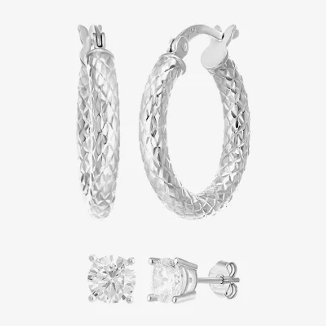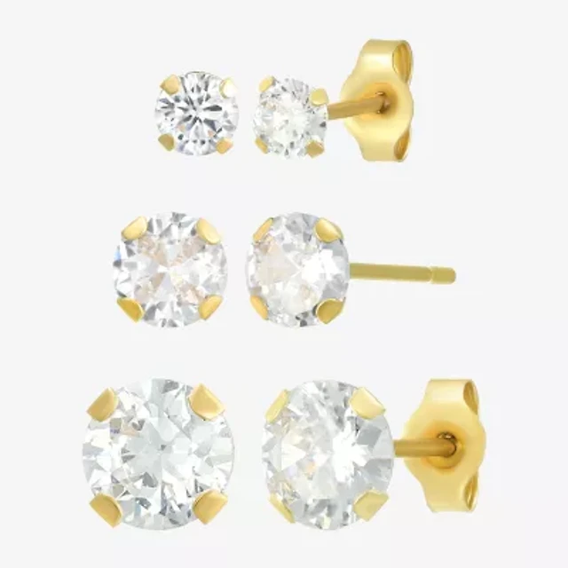 Cubic Zirconia Frame Stud Earrings in 14K Gold