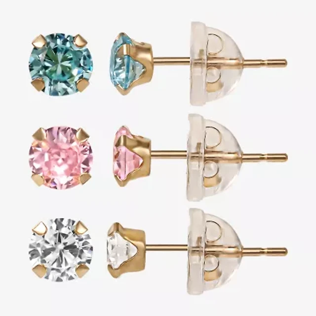Child's Cubic Zirconia Half Heart Stud Earrings in 14K Gold