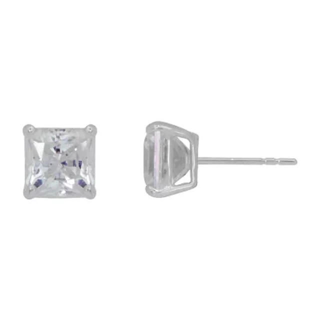 Silver 1/ Ct Miracle Princess Solitaire Stud Earrings