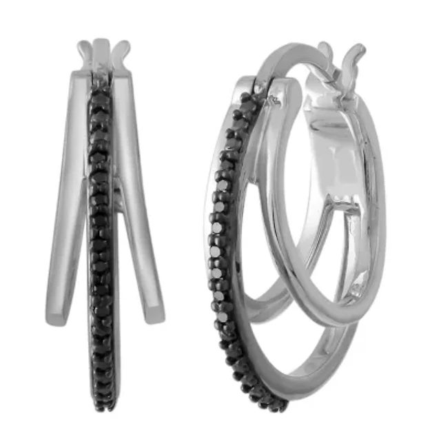 Womens Diamond Accent Natural Black Diamond Sterling Silver 21mm Hoop Earrings