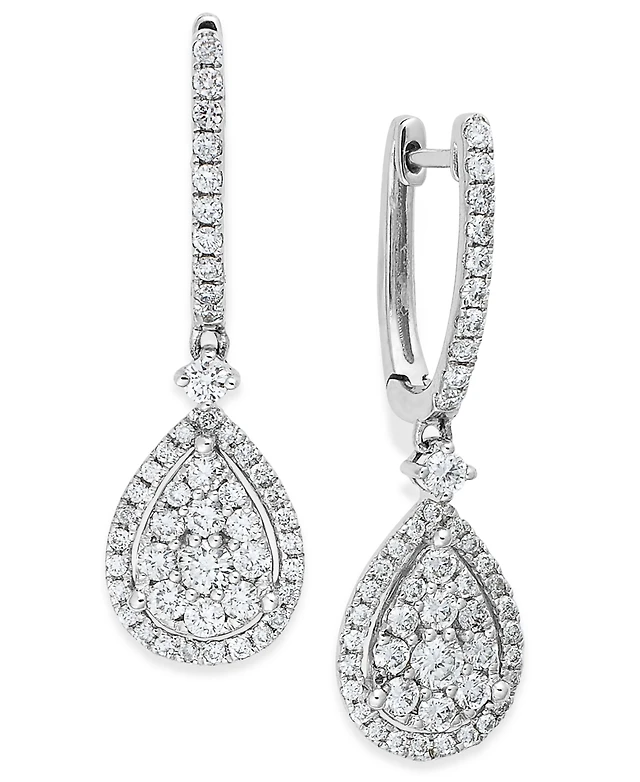 Diamond Cluster Teardrop Earrings in 14k White Gold (1 ct. t.w.)