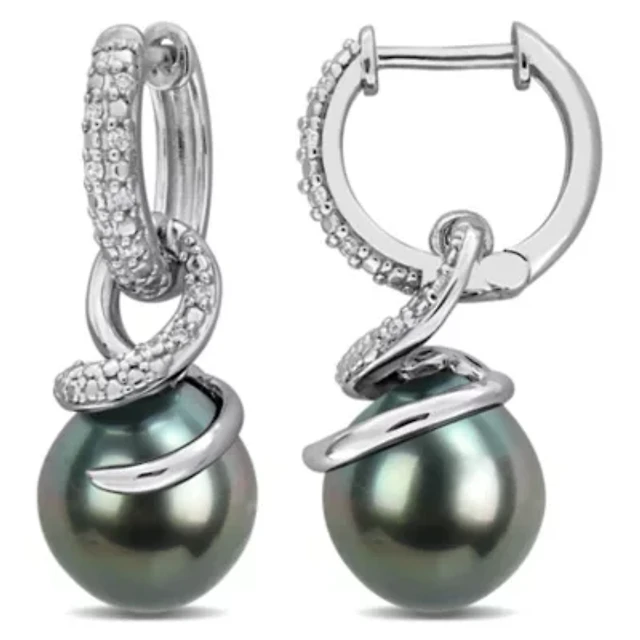 Womens Diamond Accent Natural Black Diamond Sterling Silver Diamond Drop Earrings