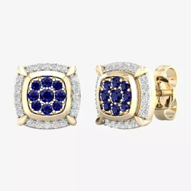 Diamond Accent Square Cuban Side Earrings in Sterling Silver with 14K Gold Plate