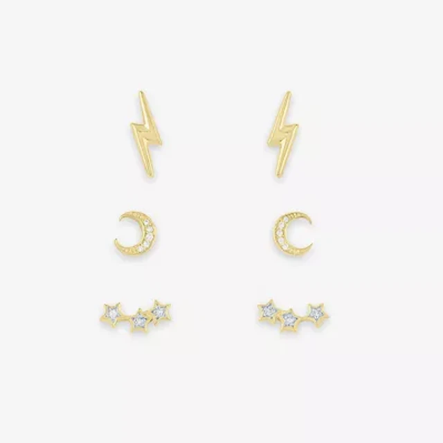 Cubic Zirconia Diamond-Cut Puff Star Dangle J-Hoop Earrings in 10K Gold