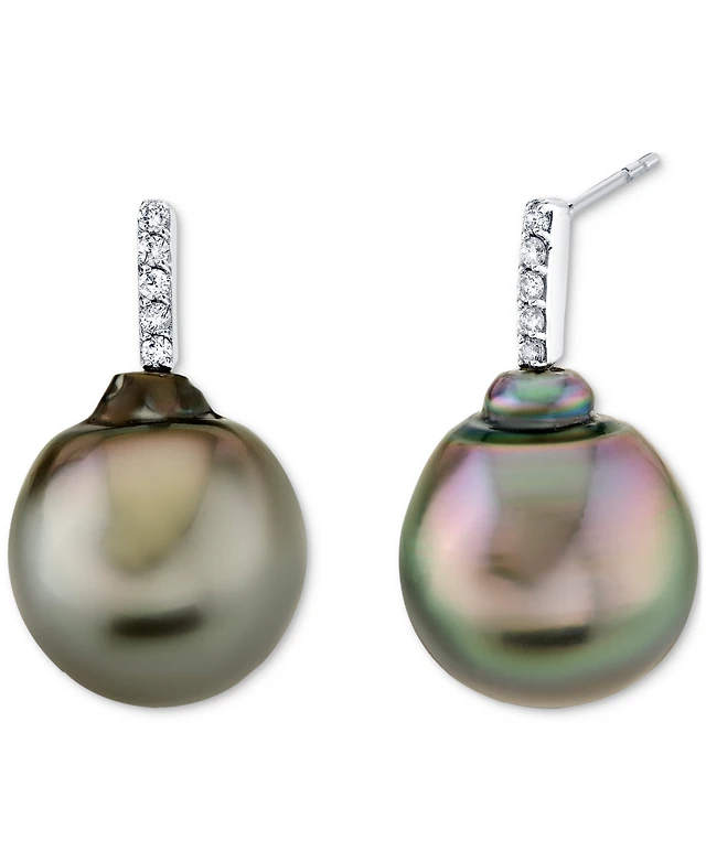 Effy Onyx, Malachite, & Diamond (1/20 ct. t.w.) Triple Drop Earrings in 14k Gold