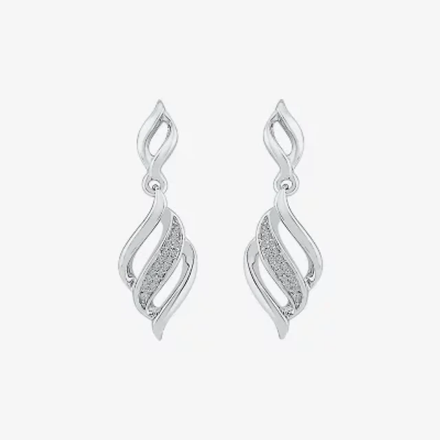Womens Diamond Accent Natural White Diamond Sterling Silver Drop Earrings