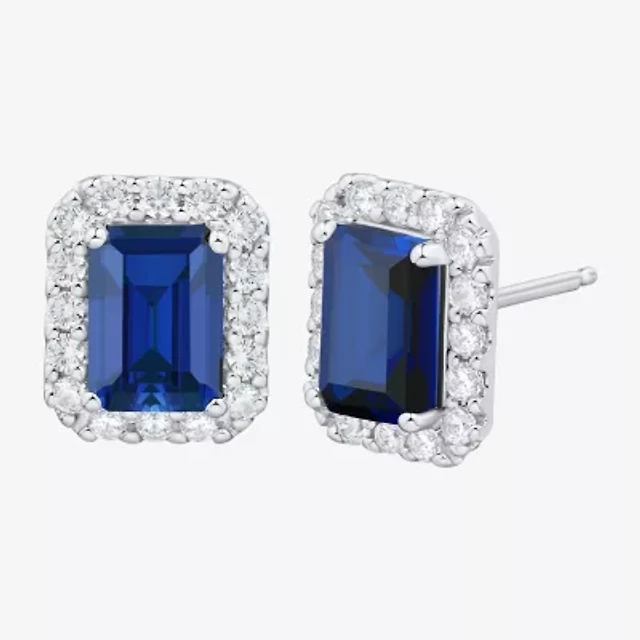 ( /E-F/Si1-Si2 ) 3 CT. T.W. Lab-GrownDiamond 14K Gold 8.1mm Emerald Stud Earrings