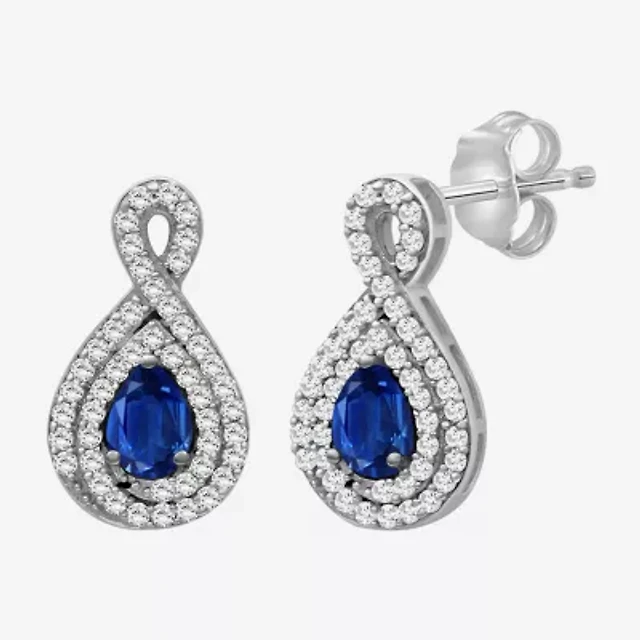Macy's White Diamond (3/8 ct. t.w.) and Sapphire (0.01 ct. t.w.) Earrings in 10k White Gold