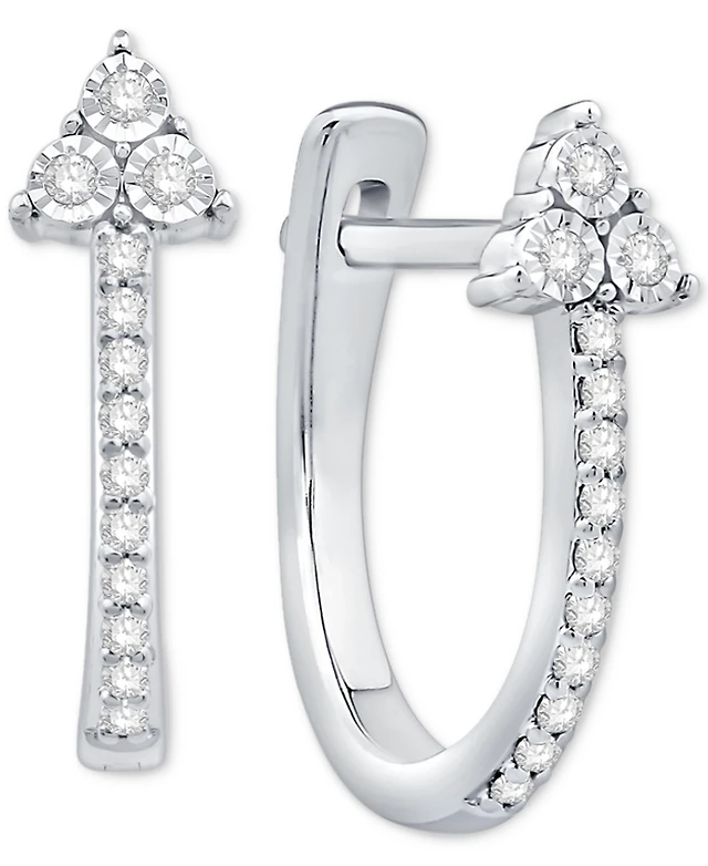 Diamond Triangle Cluster Oval Hoop Earrings (1/10 ct. t.w.) in 10k White Gold