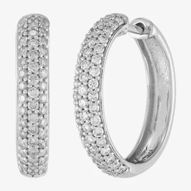 (H-I,Si2) Womens 1 CT. T.W. Lab Grown White Diamond Sterling Silver 20mm Hoop Earrings