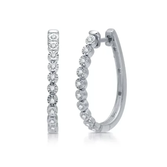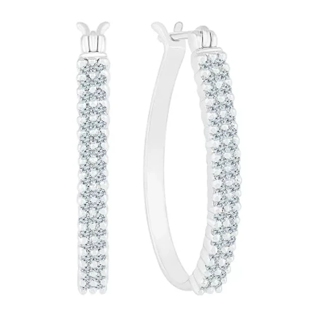 Womens 1/2 CT. T.W. Natural White Diamond Sterling Silver 23.7mm Hoop Earrings