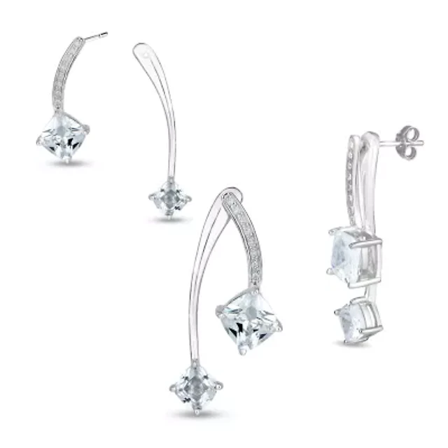 6.0mm Cushion-Cut Swiss Blue Topaz and Lab-Created White Sapphire Frame Drop Earrings in Sterling Silver