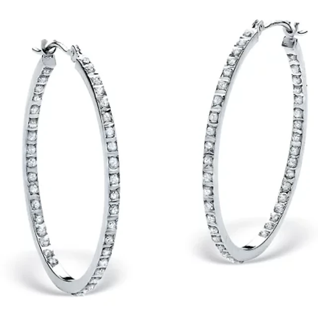 Diamonart Womens Lab Created White Cubic Zirconia Sterling Silver 19.8mm Hoop Earrings