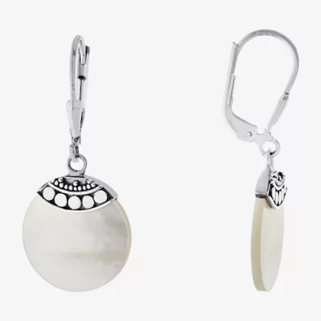 Bali Inspired Womens Genuine White Mother Of Pearl Sterling Silver Drop Earrings