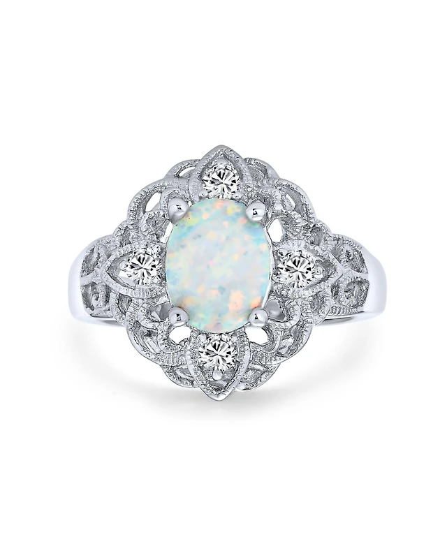 Bling Jewelry Oval Flower White Created Opal Full Finger Ring .925 Sterling Silver