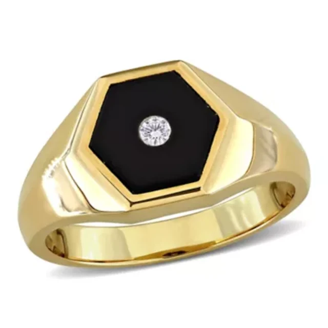 Diamond & Black Onyx Ring Yellow Plated Sterling Silver