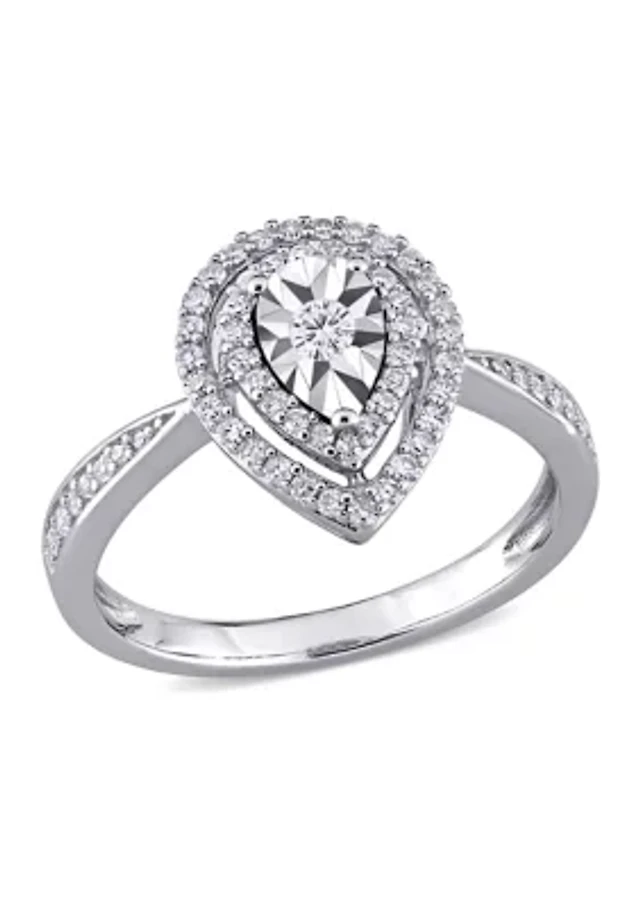 Diamond Teardrop Ring 1/15 ct tw Round-cut 10K White Gold