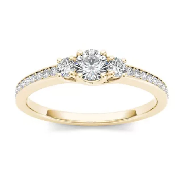 1 1/ CT.T.W. Natural Diamond 14K Yellow Gold 3-Stone Engagement Ring