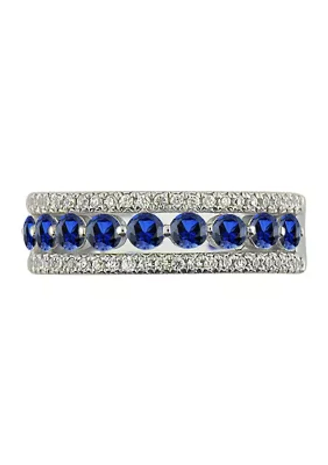 Cushion-Cut Lab-Created Blue Sapphire and Diamond Accent Ring in 10K White Gold