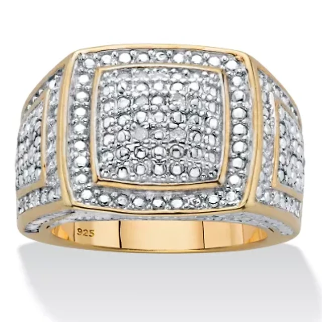 1/10 Cttw Men's Round Diamond 18k Gold-Plated Silver Grid Ring